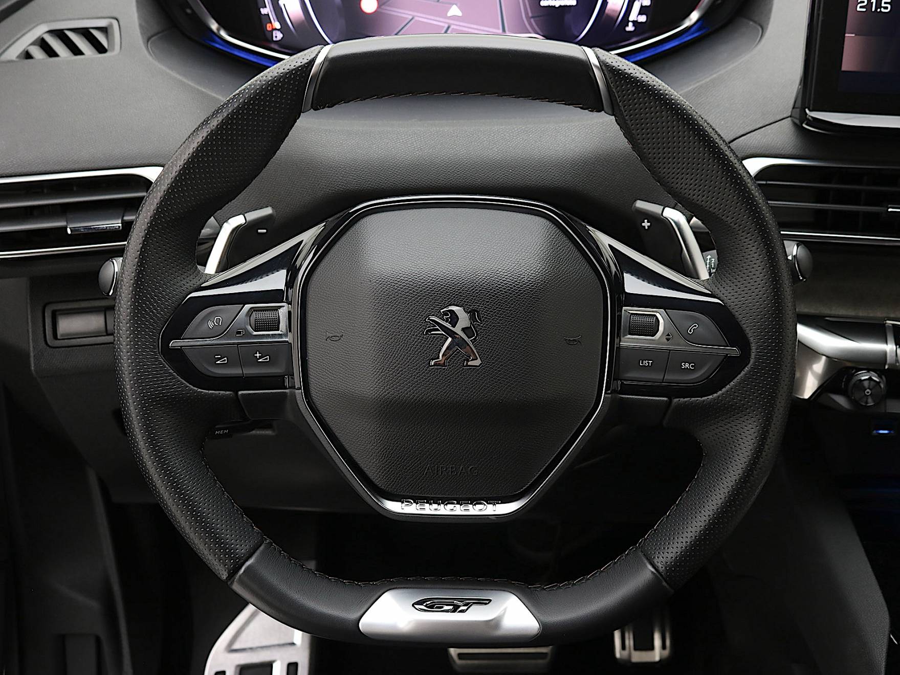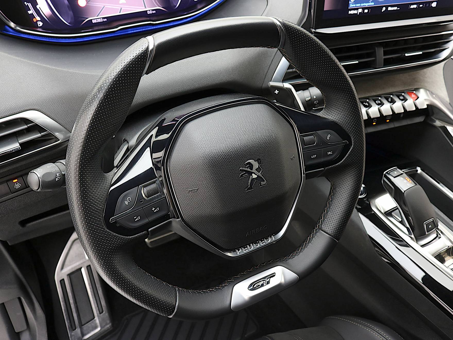 AMBIENT LED PACK: Illuminazione d'ambiente blu per guide luminose cruscotto e pannelli delle porte anteriori, vani portaoggetti tunnel centrale. PACK VISIBILITA': Parabrezza a isolamento acustico, Accensione automatica proiettori e tergicristalli e Retrovisore interno "Frameless". 2 Prese USB console centrale per passeggeri posteriori. ABS, REF e AFU. Airbag frontali conducente e passeggero con disattivazione a chiave. Alzacristalli anteriori e posteriori elettrici sequenziali e antipizzicamento. Freno di stazionamento elettrico con Hill Assist. Accensione automatica luci di emergenza in caso di forte decelerazione. Airbag a tendina anteriori e posteriori (2ª fila). Airbag laterali anteriori. Appoggiagomiti centrale anteriore con vano portaoggetti. Barre al tetto in Alluminio. Chiusura centralizzata porte con telecomando. Cinture di sicurezza anteriori e posteriori con pretensionatore, limitatore di sforzo, regolabili in altezza, 3 punti ancoraggio. Fissaggi ISOFIX per seggiolino bambini (3 posteriori). Peugeot Connect SOS & Assistance. Plafoniera dedicata terza fila con 2 spot lettura. Profili finestrini Cromati. Retrovisori esterni Nero Lucido. Retrovisori esterni Riscaldabili e Regolabili elettricamente. Retrovisori Richiudibili elettricamente con illuminazione a LED. Sedile conducente con Regolazione lombare. Sedile passeggero ripiegabile in avanti. Sedili conducente e passeggero regolabili in altezza. Soglie porte anteriori con Inserti Inox e Scritta "PEUGEOT". Specchietti di cortesia con illuminazione a LED. Volante in Pelle Traforata "Pieno Fiore" con Logo GT. Volante regolabile in altezza e profondità.