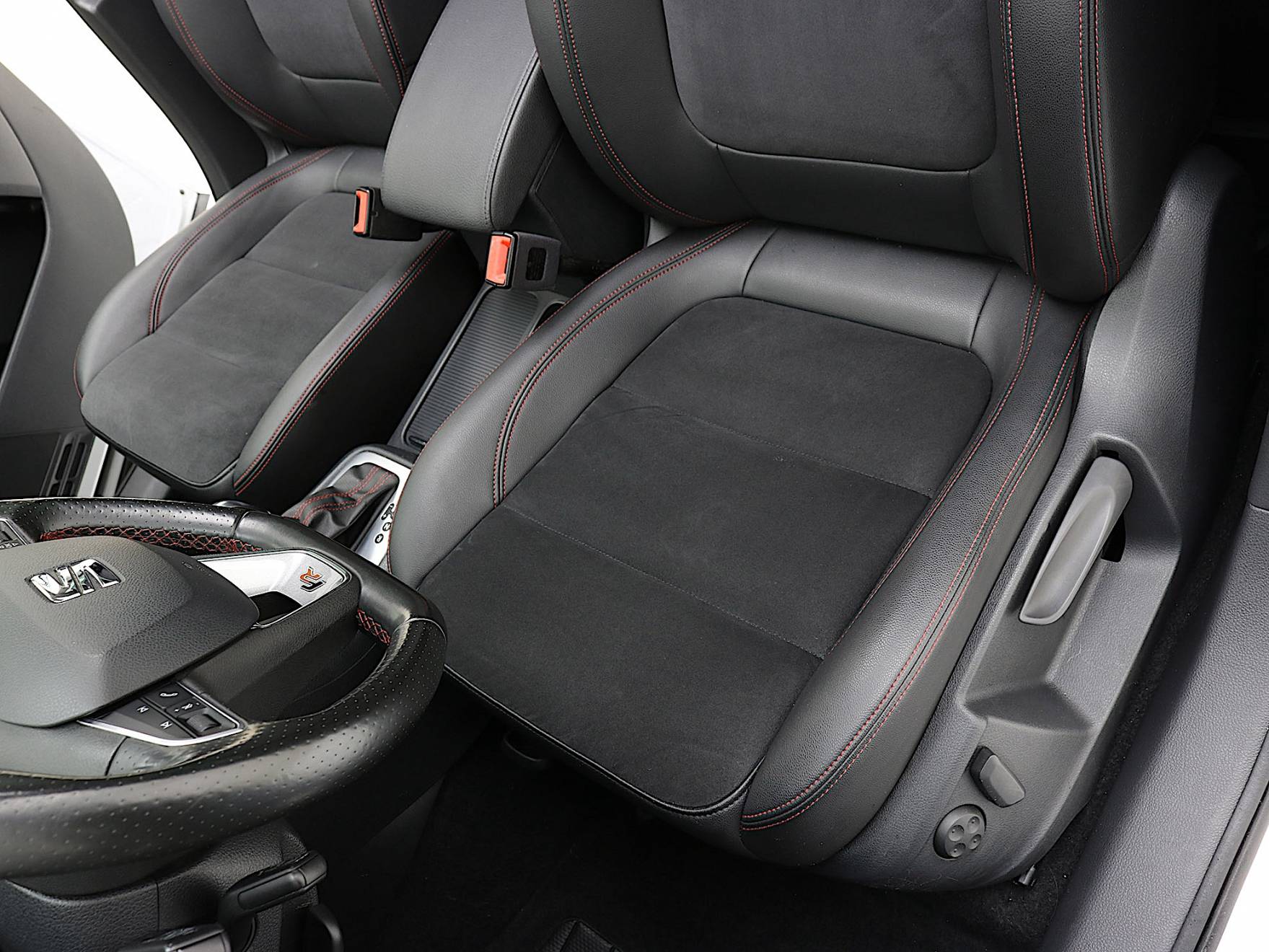 ✔️ Rivestimento degli Interni in Pelle/Alcantara Nero con Impunture Rosse. Sedile guida con Regolazione Elettrica dello schienale e della zona lombare.