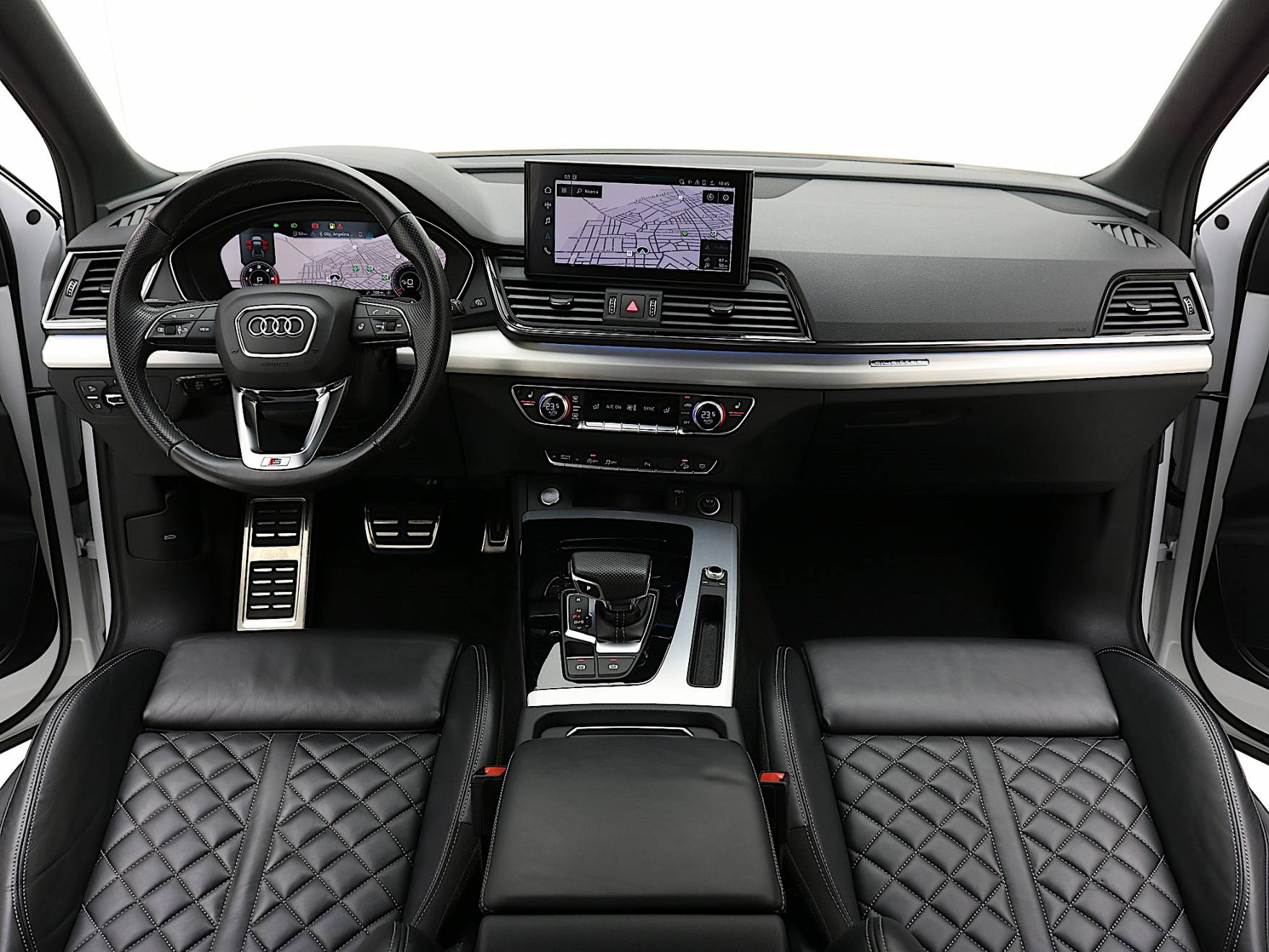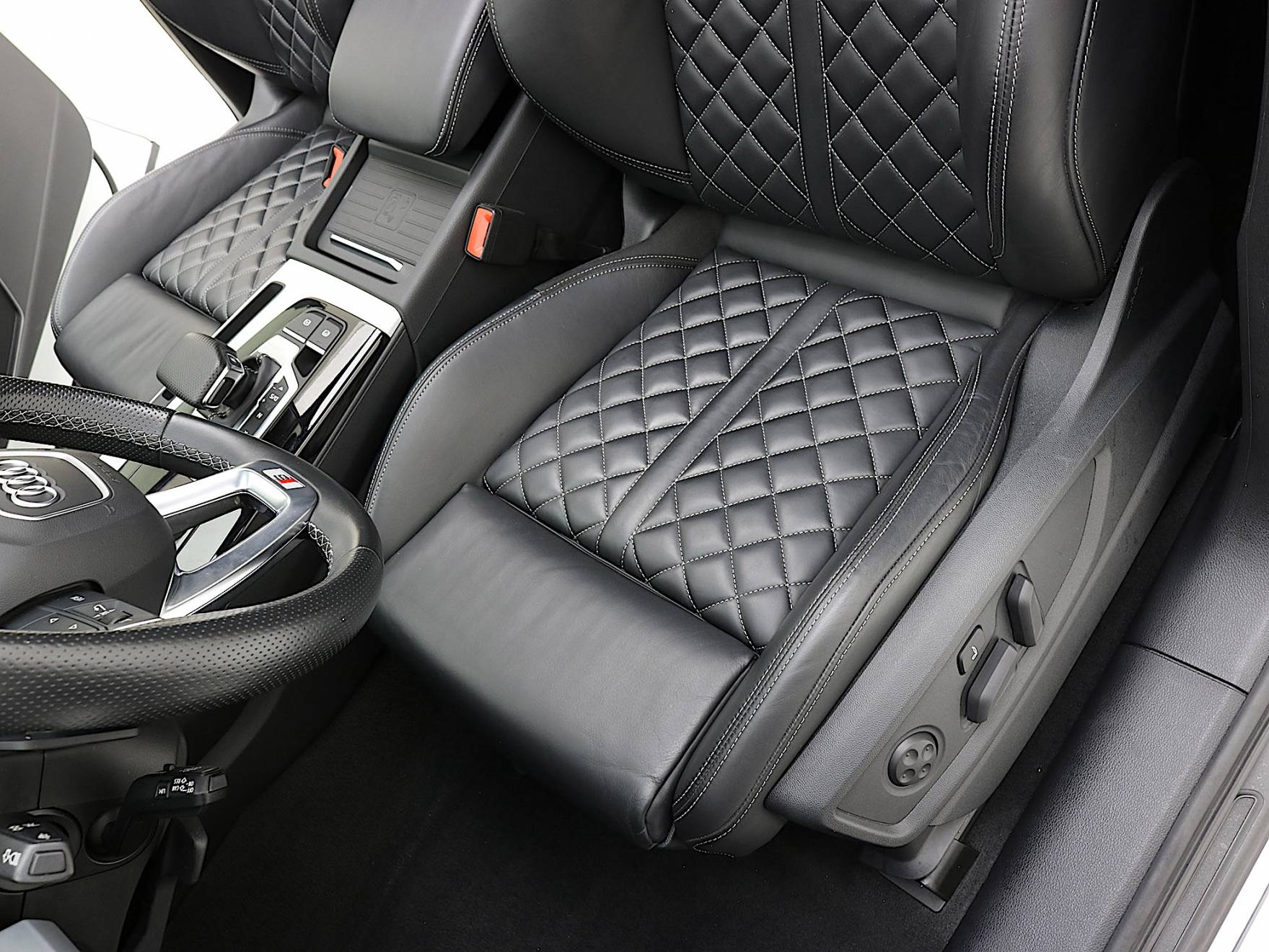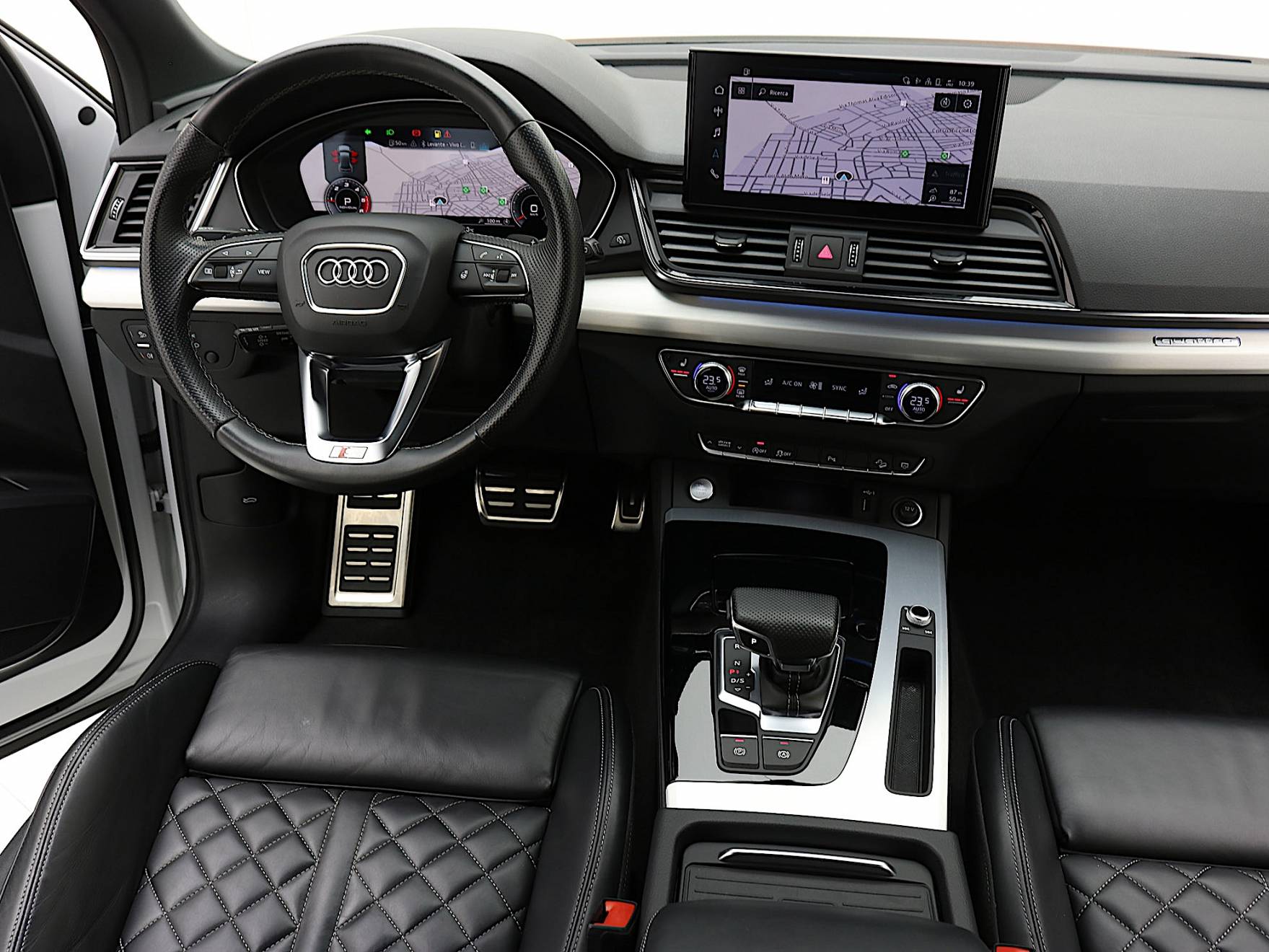 Airbag laterali anteriori. Airbag laterali per la testa. Appoggiabraccia centrale anteriore comfort. Appoggiabraccia posteriore centrale. Attrezzi di bordo. Audi Connect Emergency Call & Service. Barre portacarico per il tetto (rimovibili). Battitacco anteriore con Inserto in Alluminio illuminato con Logo S. Chiusura centralizzata con telecomando. Cofano anteriore con sistema di protezione dei pedoni. Disattivazione airbag passeggero anteriore. Immobilizer: Dispositivo antiavviamento elettronico. Dispositivo di assistenza per proiettori abbaglianti. Fondo del vano di carico. Freno di stazionamento elettromeccanico con Assistenza alla partenza. Illuminazione interna a LED. Interfaccia di ricarica USB per i passeggeri posteriori. Pacchetto luci ambiente. Parabrezza con isolamento acustico. Presa da 12V nella consolle centrale anteriore e posteriore. Sedili posteriori con schienale ribaltabile divisibile in rapporto 40/20/40. Serbatoio AdBlue da 24 litri. Serbatoio carburante da 70 litri. Servosterzo elettromeccanico. Sistema di ancoraggio ISOFIX e 3° punto di ancoraggio Top Tether sui sedili posteriori laterali. Sistema di controllo pressione pneumatici. Sistema Start & Stop. Specchietti retrovisori esterni schermabili automaticamente. Specchietti retrovisivi esterni con indicatori di direzione a LED integrati. Specchietti retrovisivi esterni Riscaldabili e Ripiegabili elettricamente. Specchietto retrovisore esterno lato passeggero con dispositivo bordo marciapiede. Specchietto retrovisivo interno schermabile automaticamente con design senza cornice. Ugelli lavavetro riscaldati. Vani portaoggetti/portabevande.