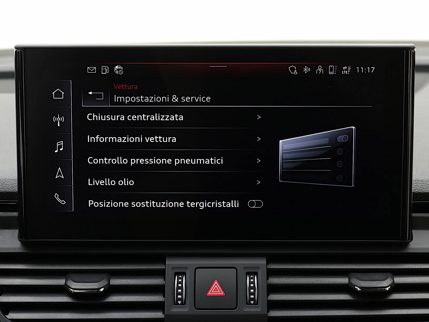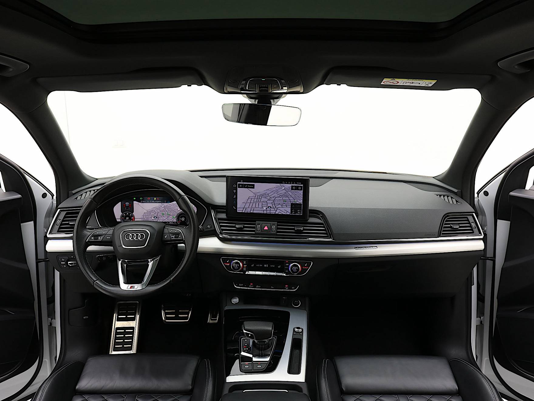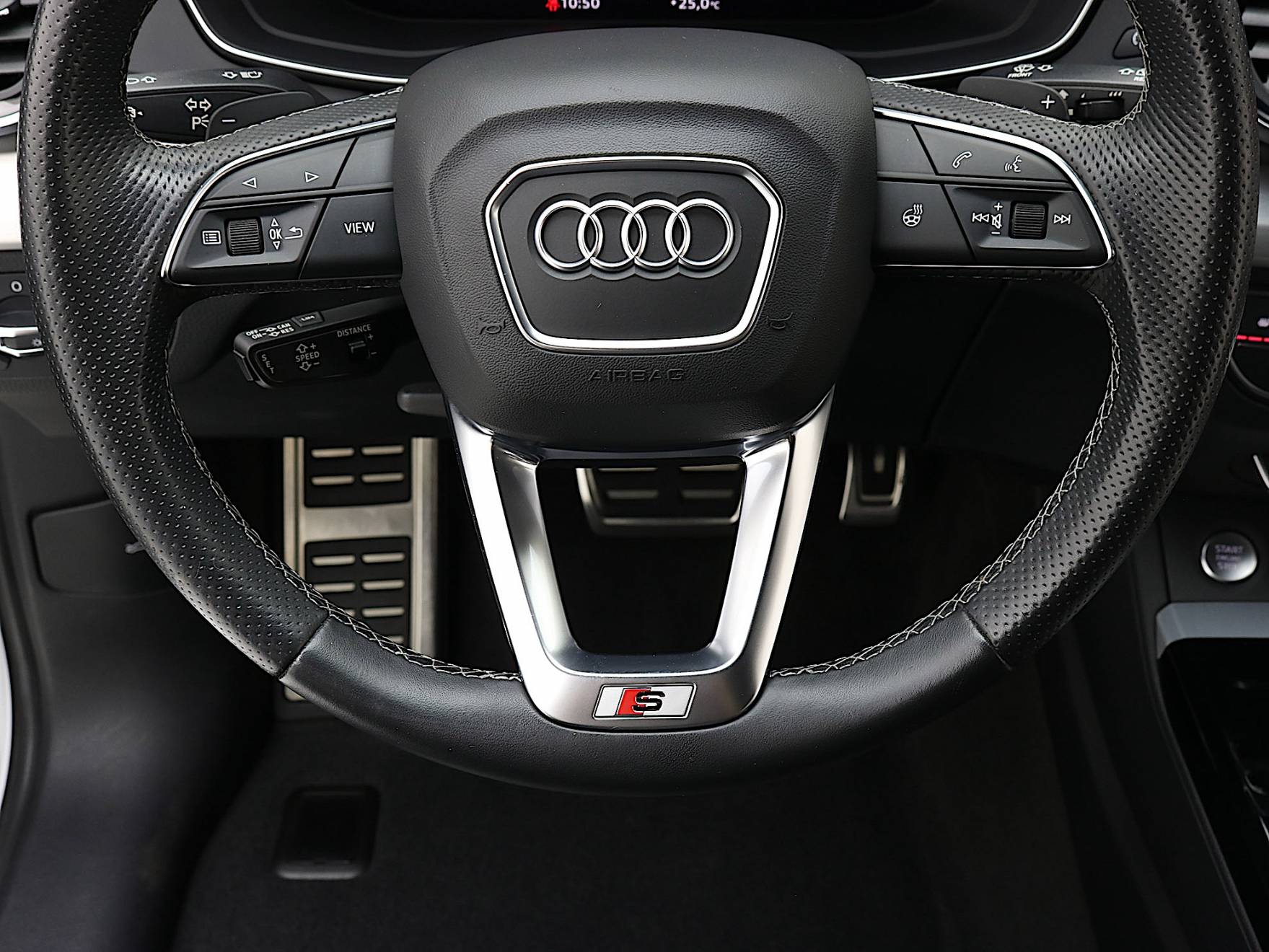 Airbag laterali anteriori. Airbag laterali per la testa. Appoggiabraccia centrale anteriore comfort. Appoggiabraccia posteriore centrale. Attrezzi di bordo. Audi Connect Emergency Call & Service. Barre portacarico per il tetto (rimovibili). Battitacco anteriore con Inserto in Alluminio illuminato con Logo S. Chiusura centralizzata con telecomando. Cofano anteriore con sistema di protezione dei pedoni. Disattivazione airbag passeggero anteriore. Immobilizer: Dispositivo antiavviamento elettronico. Dispositivo di assistenza per proiettori abbaglianti. Fondo del vano di carico. Freno di stazionamento elettromeccanico con Assistenza alla partenza. Illuminazione interna a LED. Interfaccia di ricarica USB per i passeggeri posteriori. Pacchetto luci ambiente. Parabrezza con isolamento acustico. Presa da 12V nella consolle centrale anteriore e posteriore. Sedili posteriori con schienale ribaltabile divisibile in rapporto 40/20/40. Serbatoio AdBlue da 24 litri. Serbatoio carburante da 70 litri. Servosterzo elettromeccanico. Sistema di ancoraggio ISOFIX e 3° punto di ancoraggio Top Tether sui sedili posteriori laterali. Sistema di controllo pressione pneumatici. Sistema Start & Stop. Specchietti retrovisori esterni schermabili automaticamente. Specchietti retrovisivi esterni con indicatori di direzione a LED integrati. Specchietti retrovisivi esterni Riscaldabili e Ripiegabili elettricamente. Specchietto retrovisore esterno lato passeggero con dispositivo bordo marciapiede. Specchietto retrovisivo interno schermabile automaticamente con design senza cornice. Ugelli lavavetro riscaldati. Vani portaoggetti/portabevande.